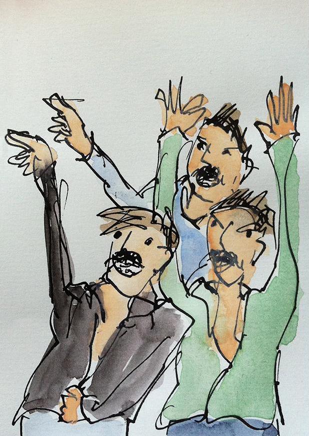 Drei aufgeregte Schnauzbärtige