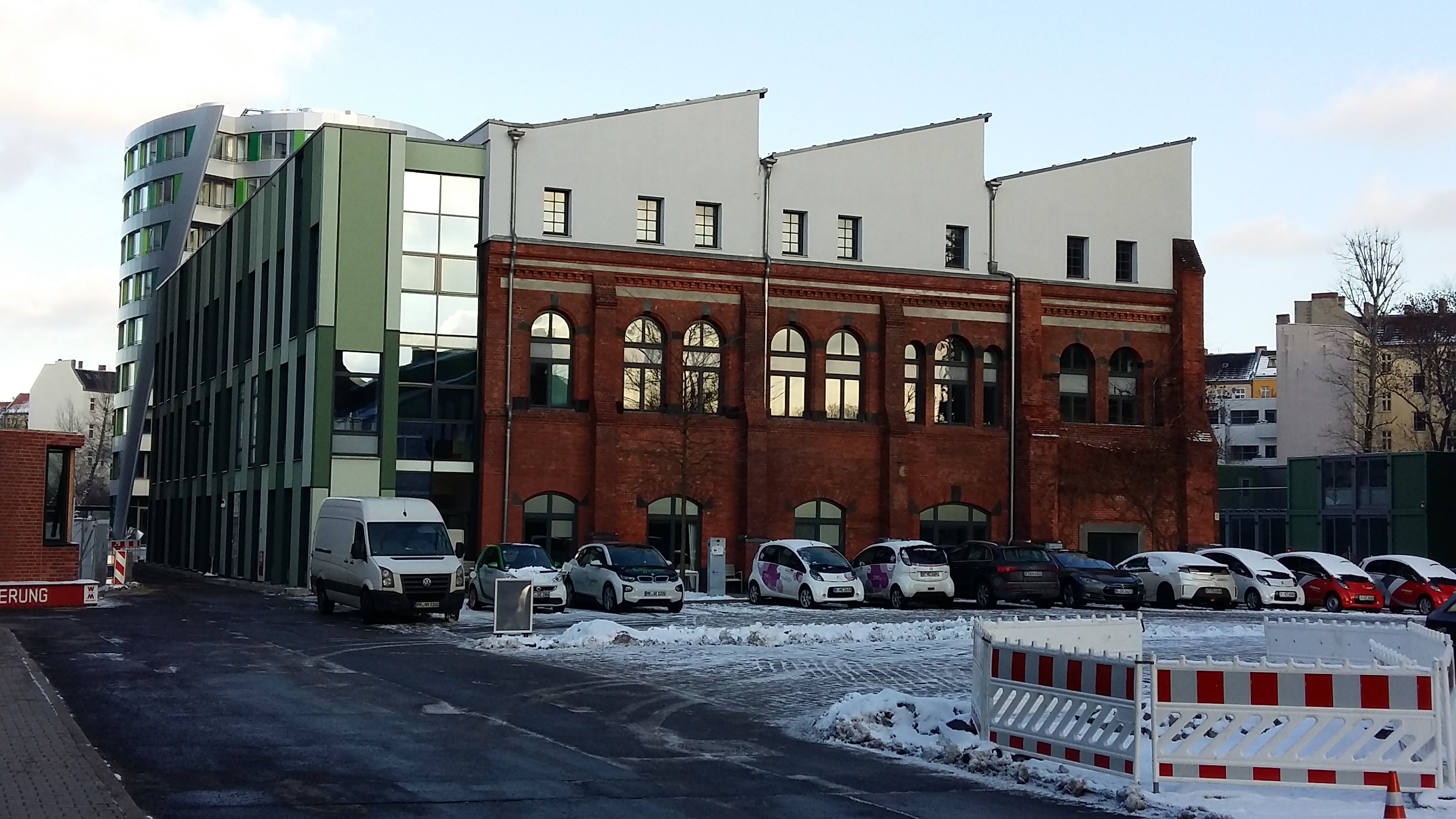 Elektroautos und Scooter surren um die Ecken des 55.000 Quadratmeter großen Geländes. Auf den freien Flächen stehen die unterschiedlichsten Modelle von Ladestationen und Elektroautos – und in den Gebäuden sind die Unternehmen ansässig, die die dazu gehörige Infrastruktur entwickeln, verbessern und am Laufen halten. Der gesamte Campus verbreitet einen postindustriellen Charme – mit einer bunten Mischung aus rotem Berliner Backstein, aus grauem siebziger Jahre Beton und modernen Glas-, Kunststoff- und Stahl-Fassaden. In der zweiten Etage eines grauen Zweckbaus teilen sich acht Mitarbeiter des Start-Ups Plug Surfing zwei Büros und einen Besprechungsraum. In dem Gebäude haben sich Start-Ups angesiedelt, die Atmosphäre ist geschäftig und pragmatisch. Während die Start-Up-Szene in Berlins Mitte auf eine sehr stylische Arbeitsumgebung Wert legen, sind hier in Schöneberg offensichtlich eher Handwerker und Pragmatiker Zuhause.
