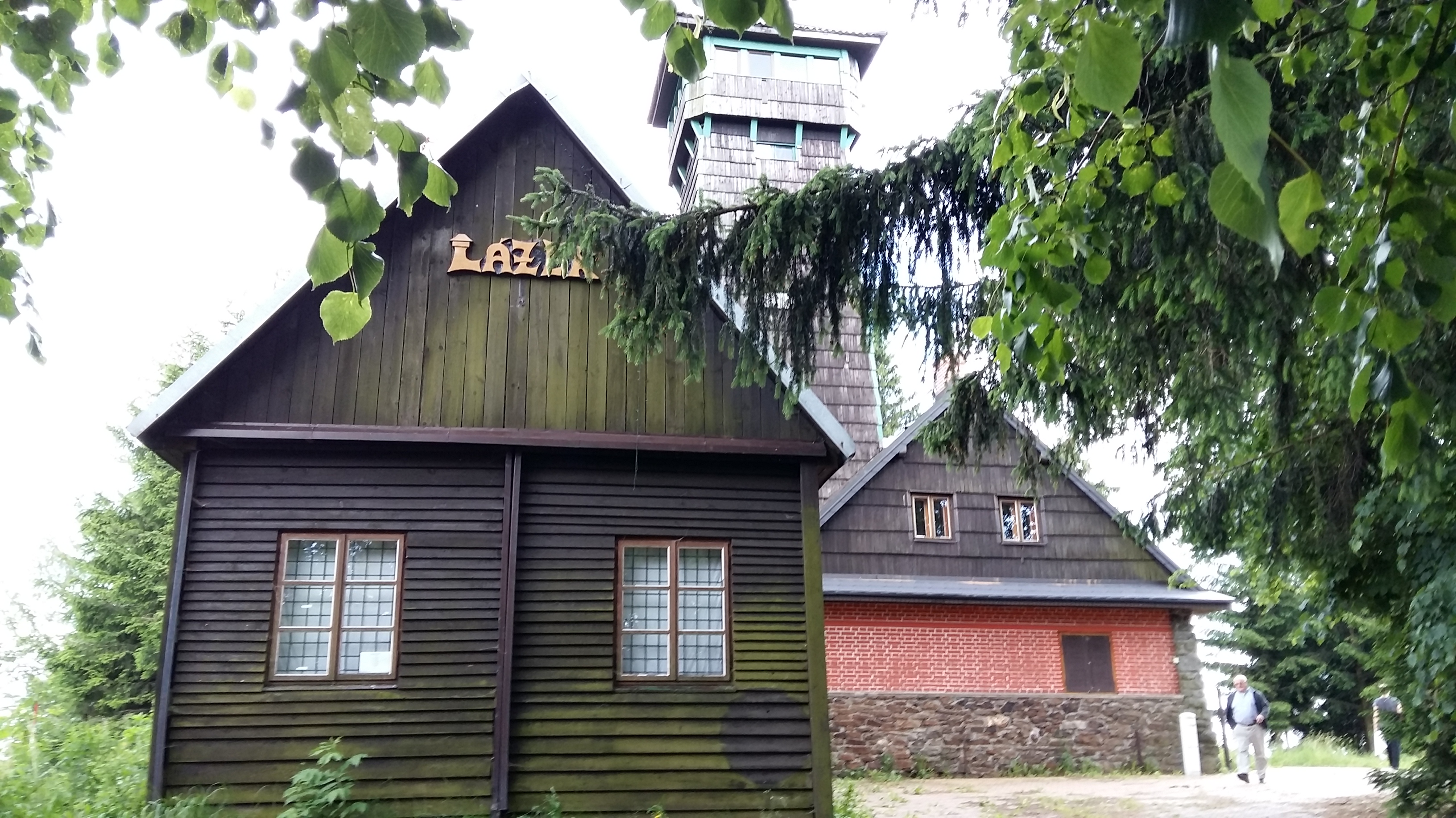 Hotel und Spritzenhaus sind im Tal, der Aussichtsturm steht auf dem Berg Lázek. So sieht es oben aus…