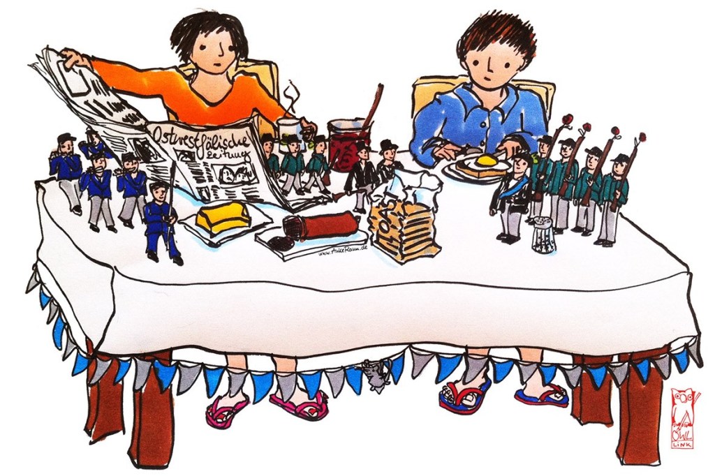 525 years of singing and dancing the Eastwestphalian way. Dressed up in fantasy uniforms and drumming and piping traditional military music the „Schützen“-festival is clebrated in Lübbecke citycenter and on breakfast tables.